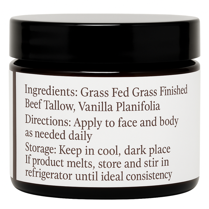 100% Grass Fed Grass Finished Whipped Vanilla Beef Tallow Moisturizer 1.7 oz
